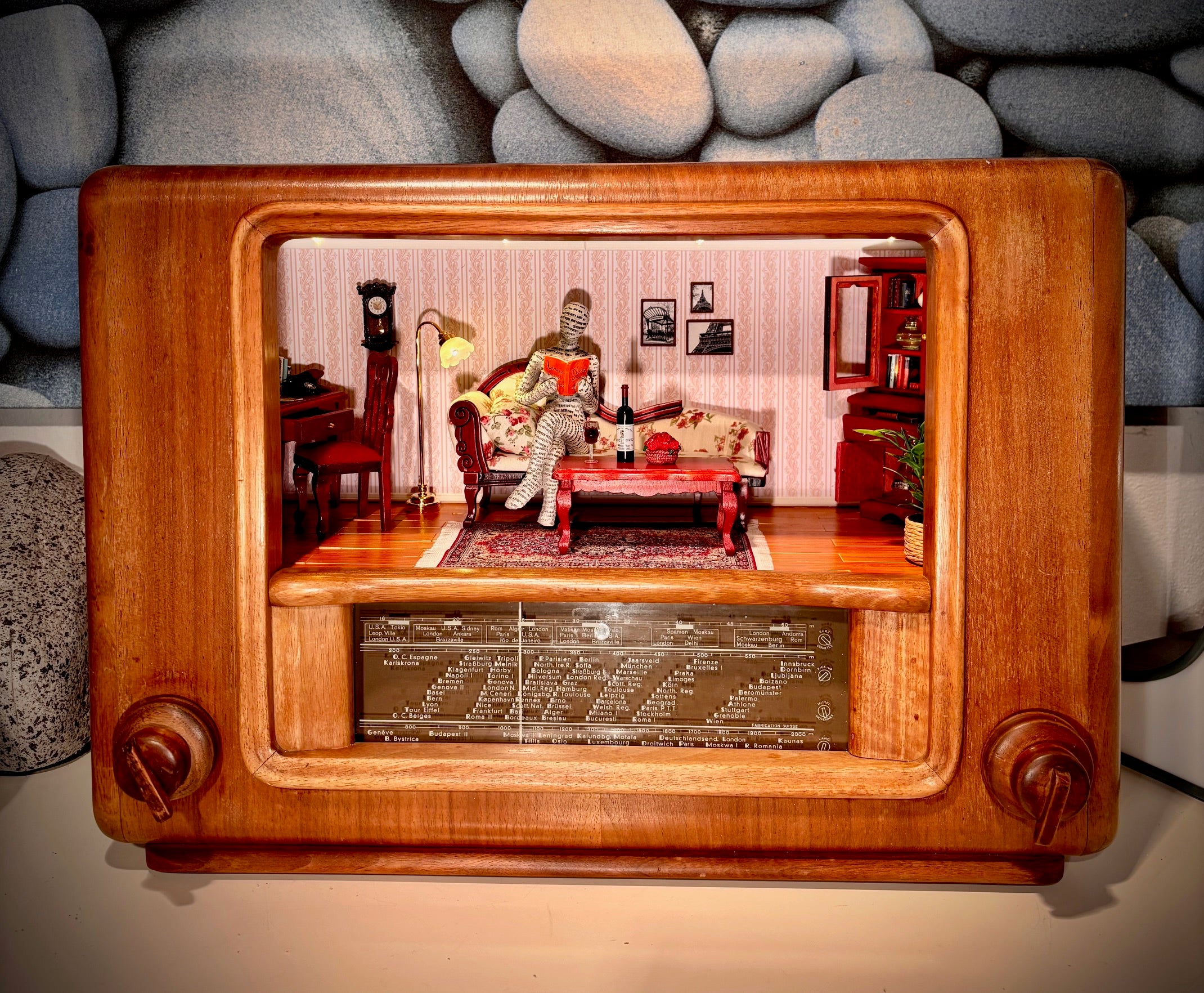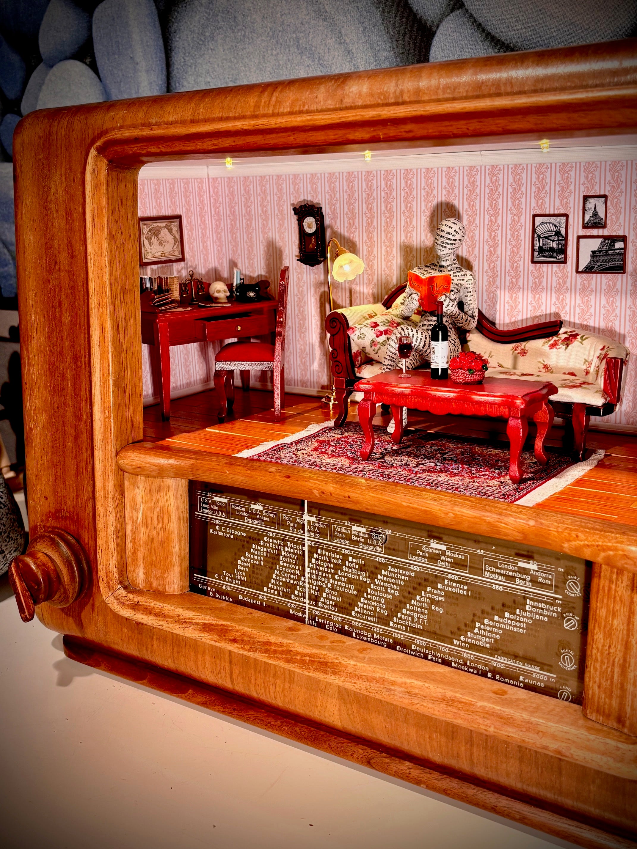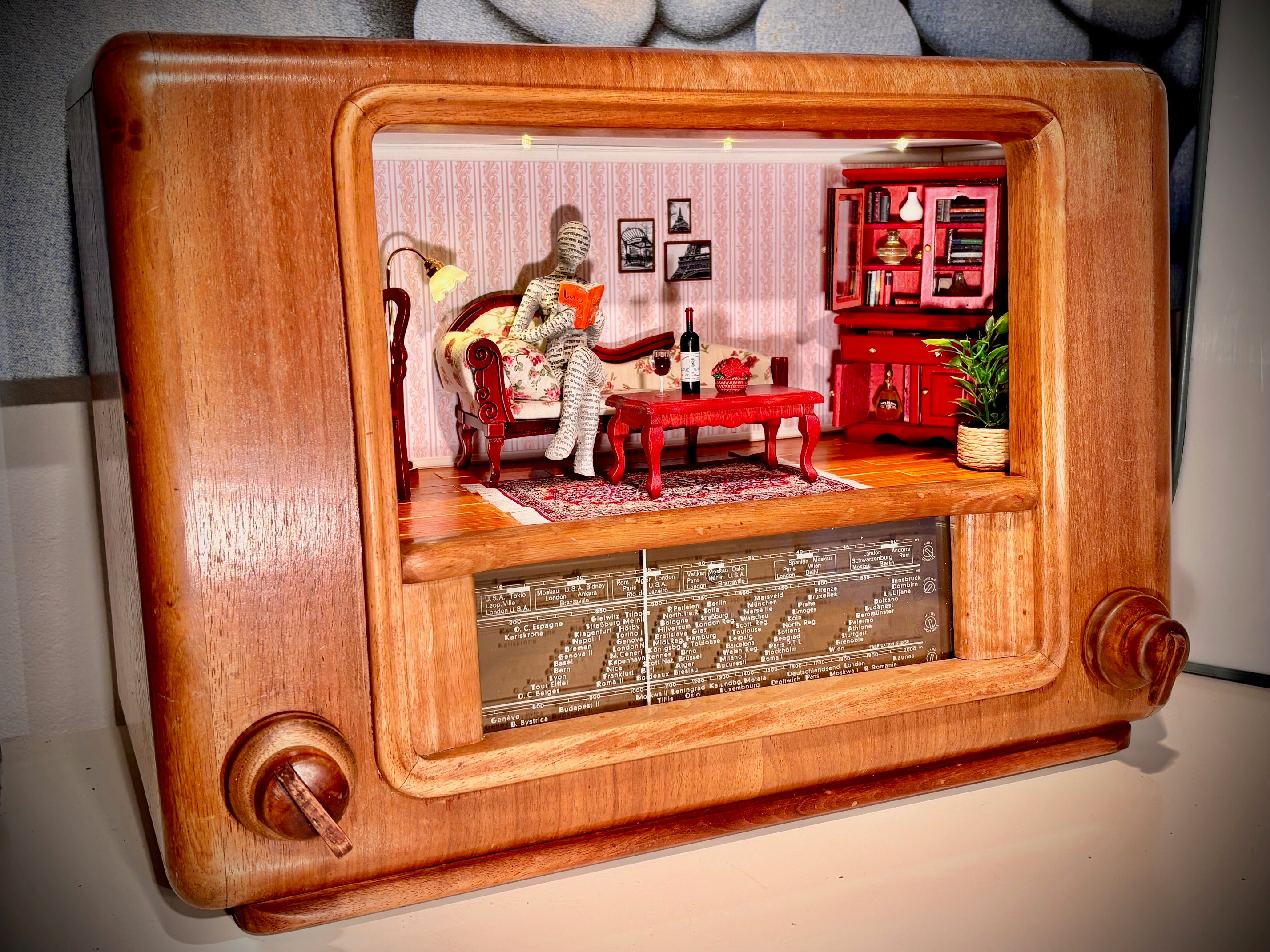 Altes Röhren-Radio mit "Wohnzimmer". Inkl. integriertem Bewegungsmelder für das Licht.