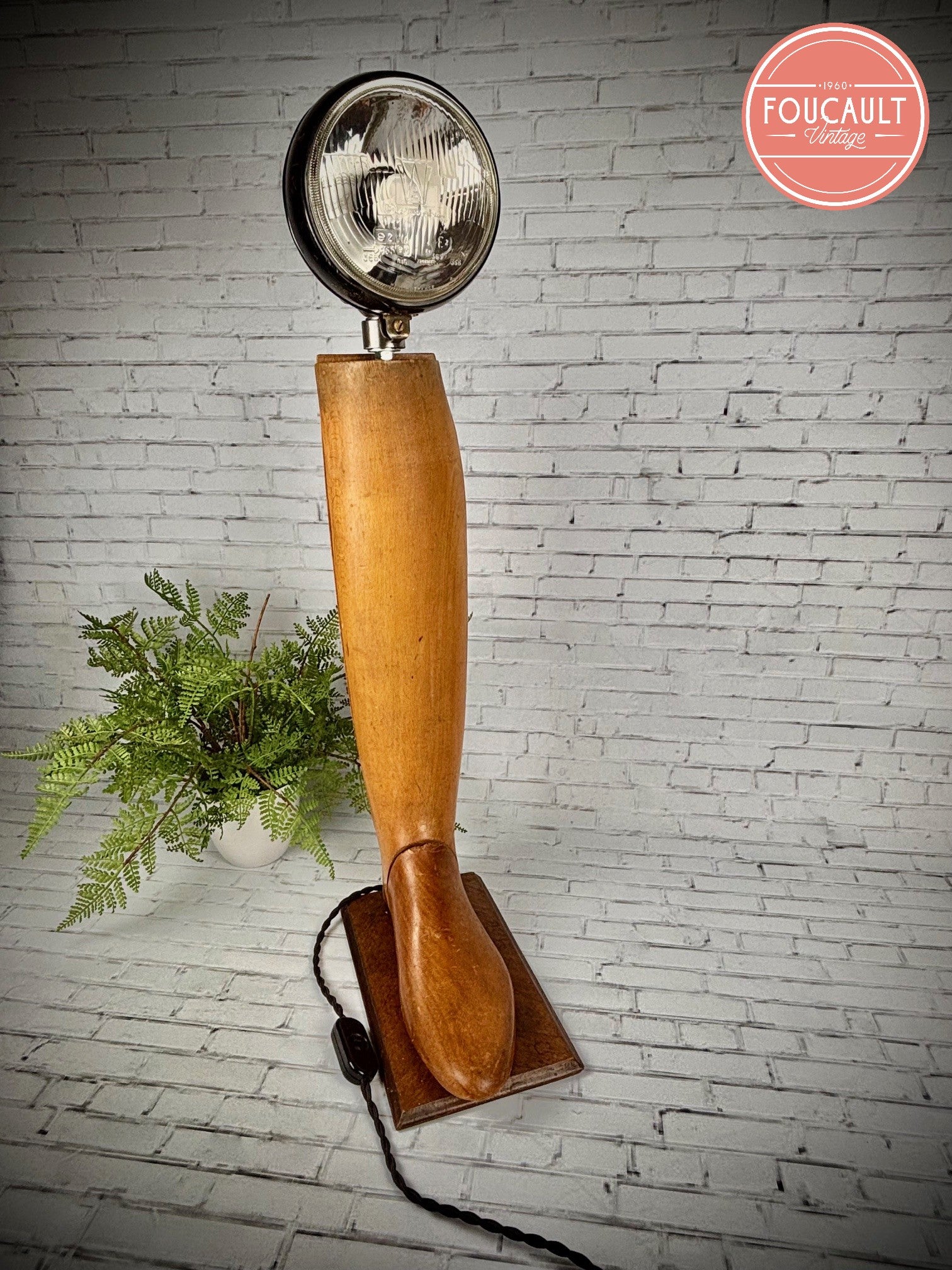 Diese originelle Schuhspanner für Stiefel ist ein echter Hingucker. Der Scheinwerfer rundet das Objekt ab. Das Stoffkabel verfügt über einen Kippschalter mit Stecker.