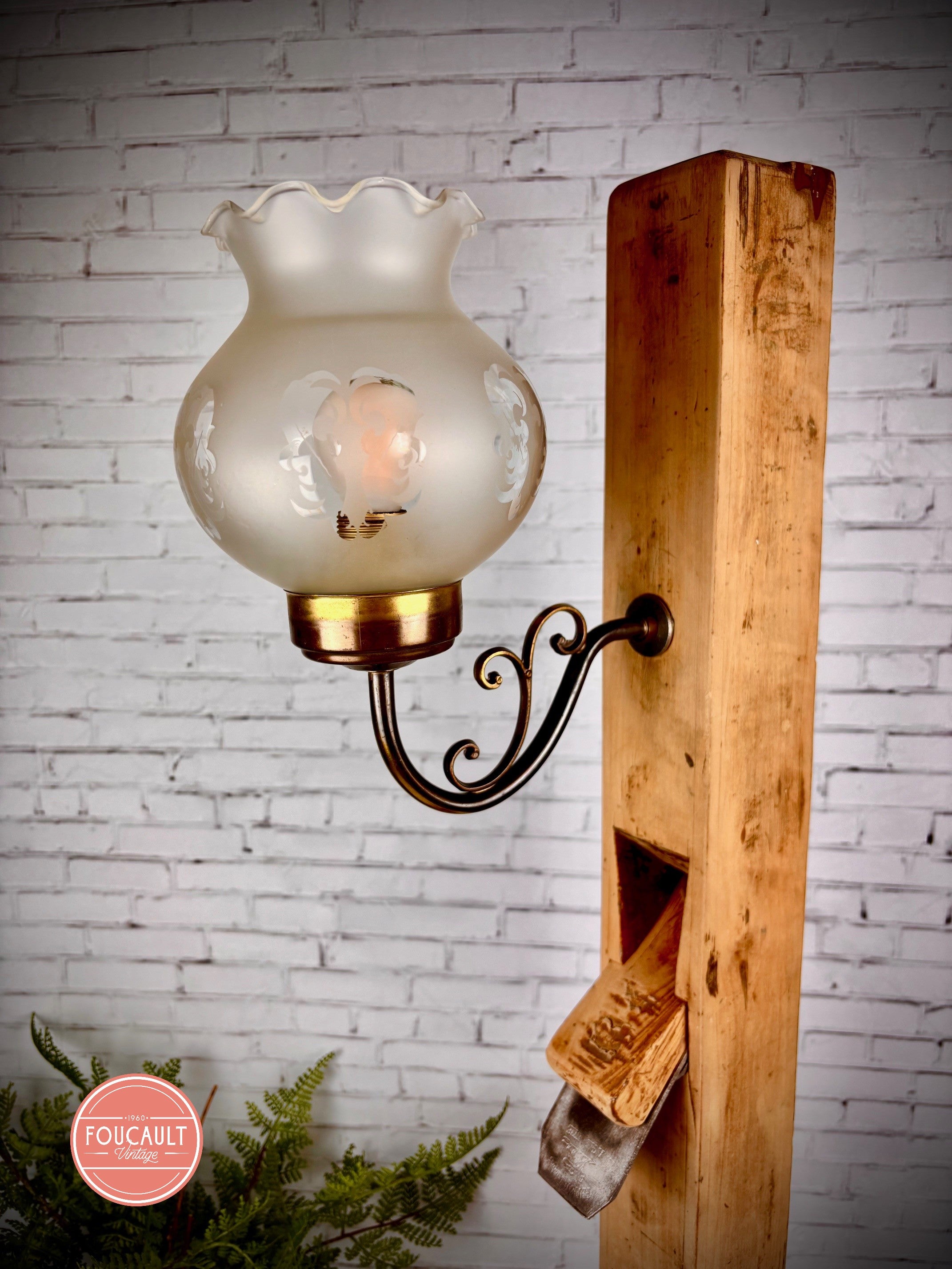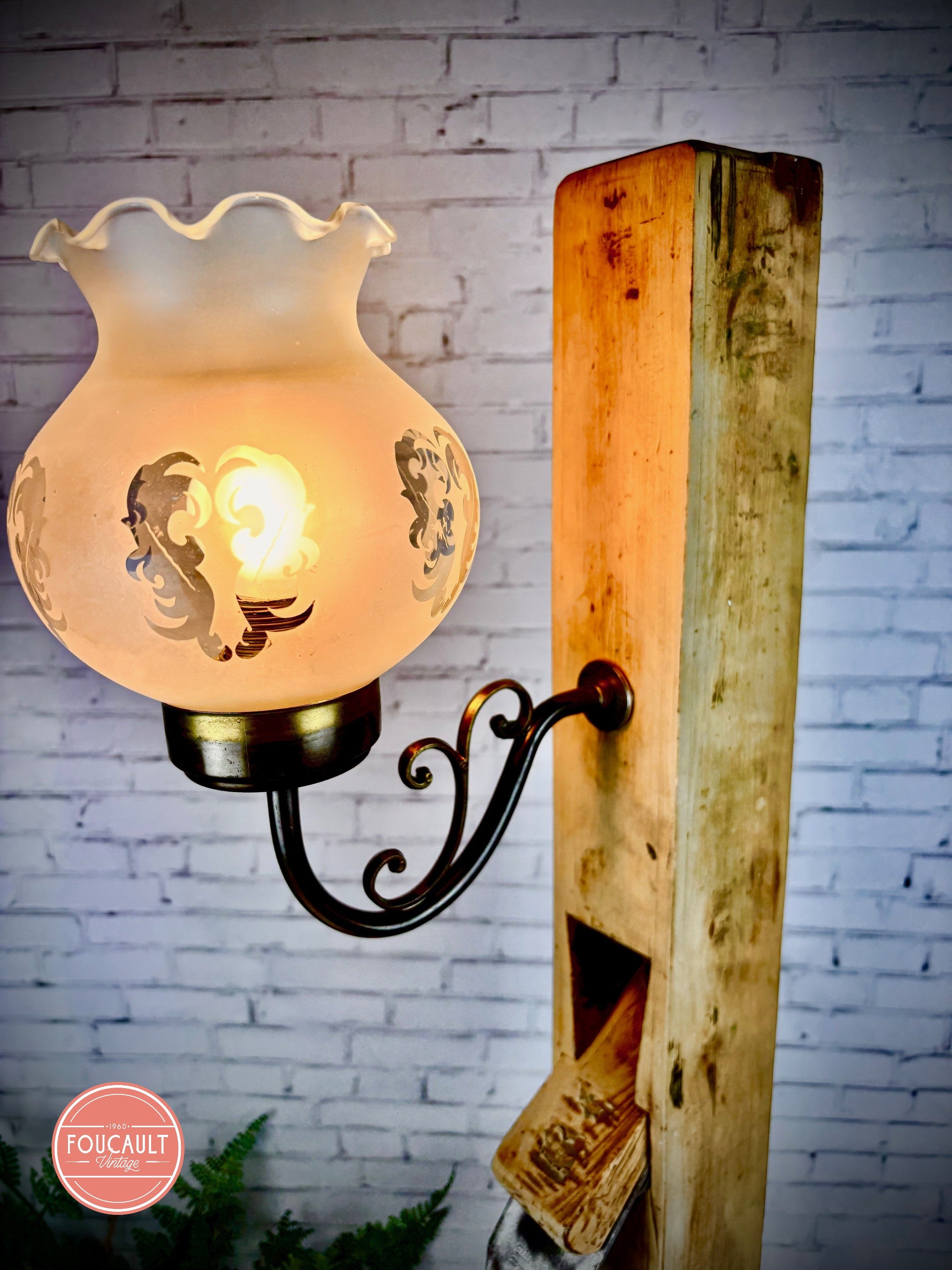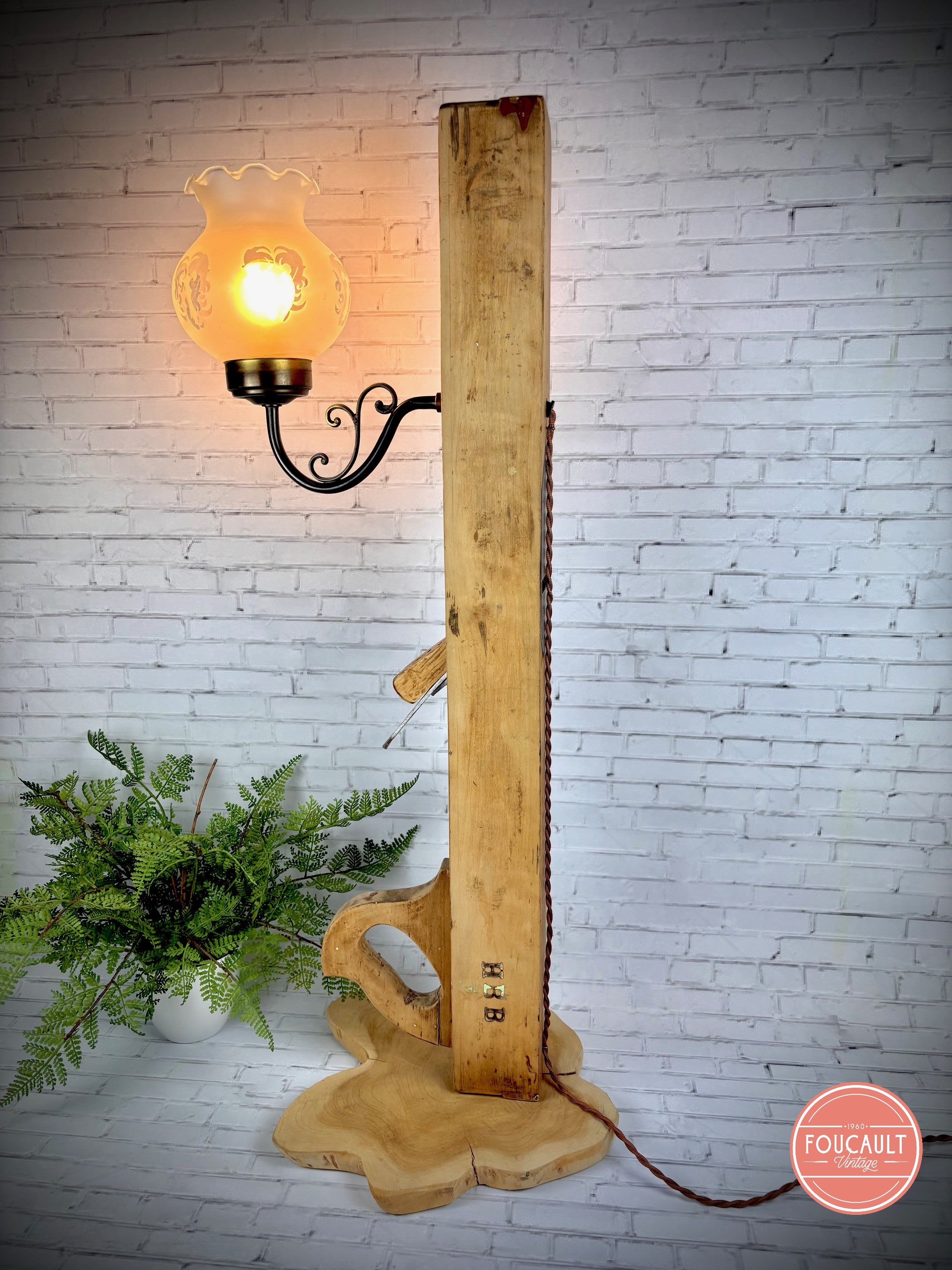 Langhobel mit Messing Glaslampe auf Wurzelholz